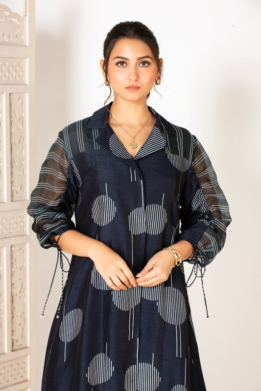 MIDNIGHT BLUE CIRCLE & STRIPES HIGH LOW SHIRT
