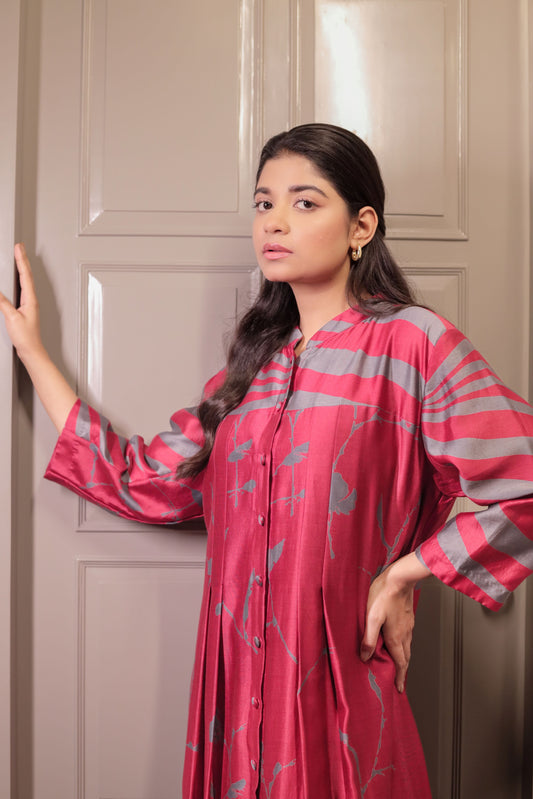 MAROON FLORAL+ WAVES PLEATED KURTA